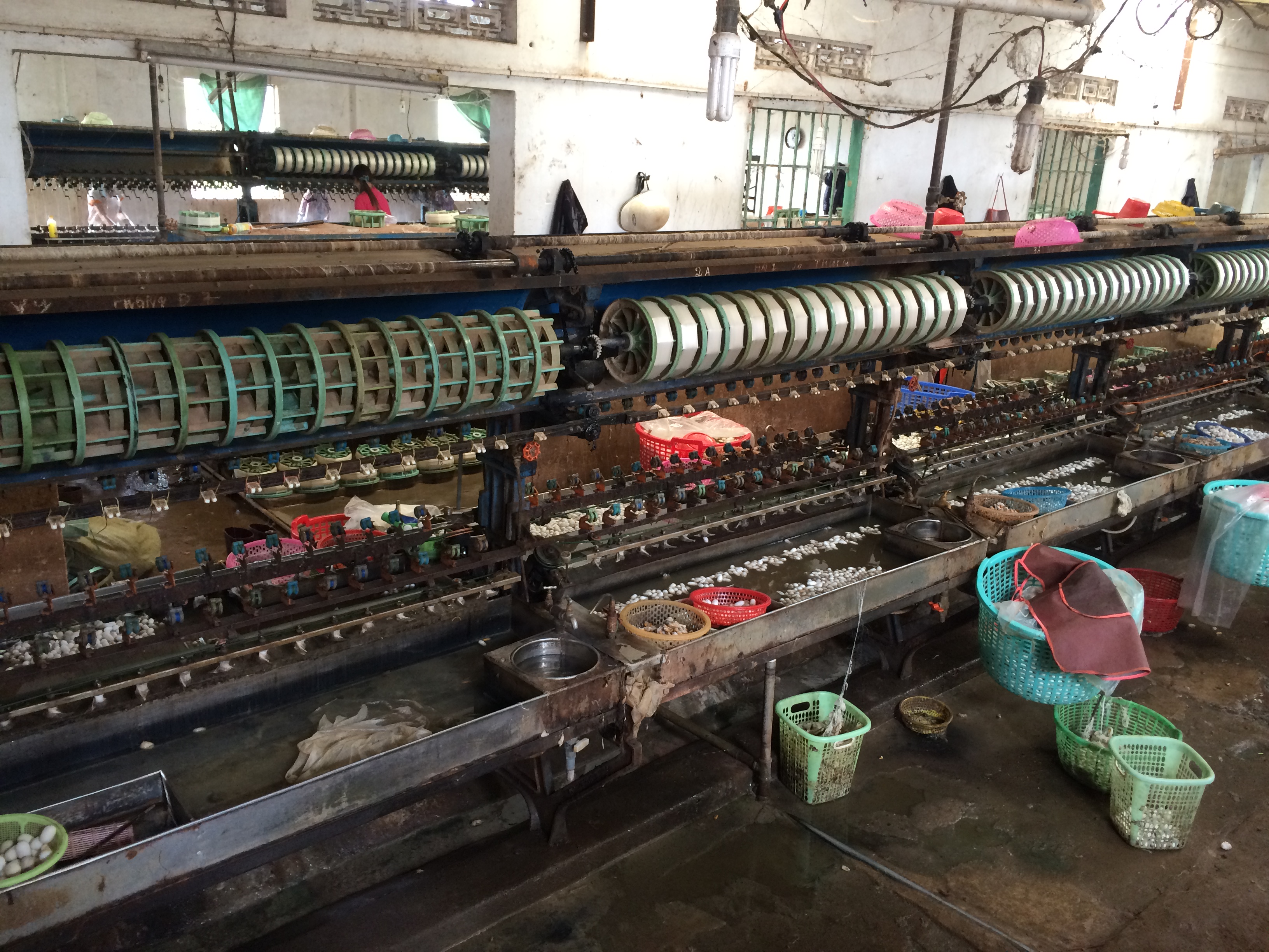 Headed to the silk farm. Fun facts: One cocoon can make 300 meters of silk. Silk worms are still alive in the cocoon. The worms that have died in the cocoon cannot be used for silk, but they are used as bedding for the inside of mattresses. Cocoons are boiled for 5 minutes and then put in cold water to begin spinning. After the cocoon had been used the people eat the worms. You can also put honey in the cocoon and rub it on your face, it is suppose to be good for your skin.