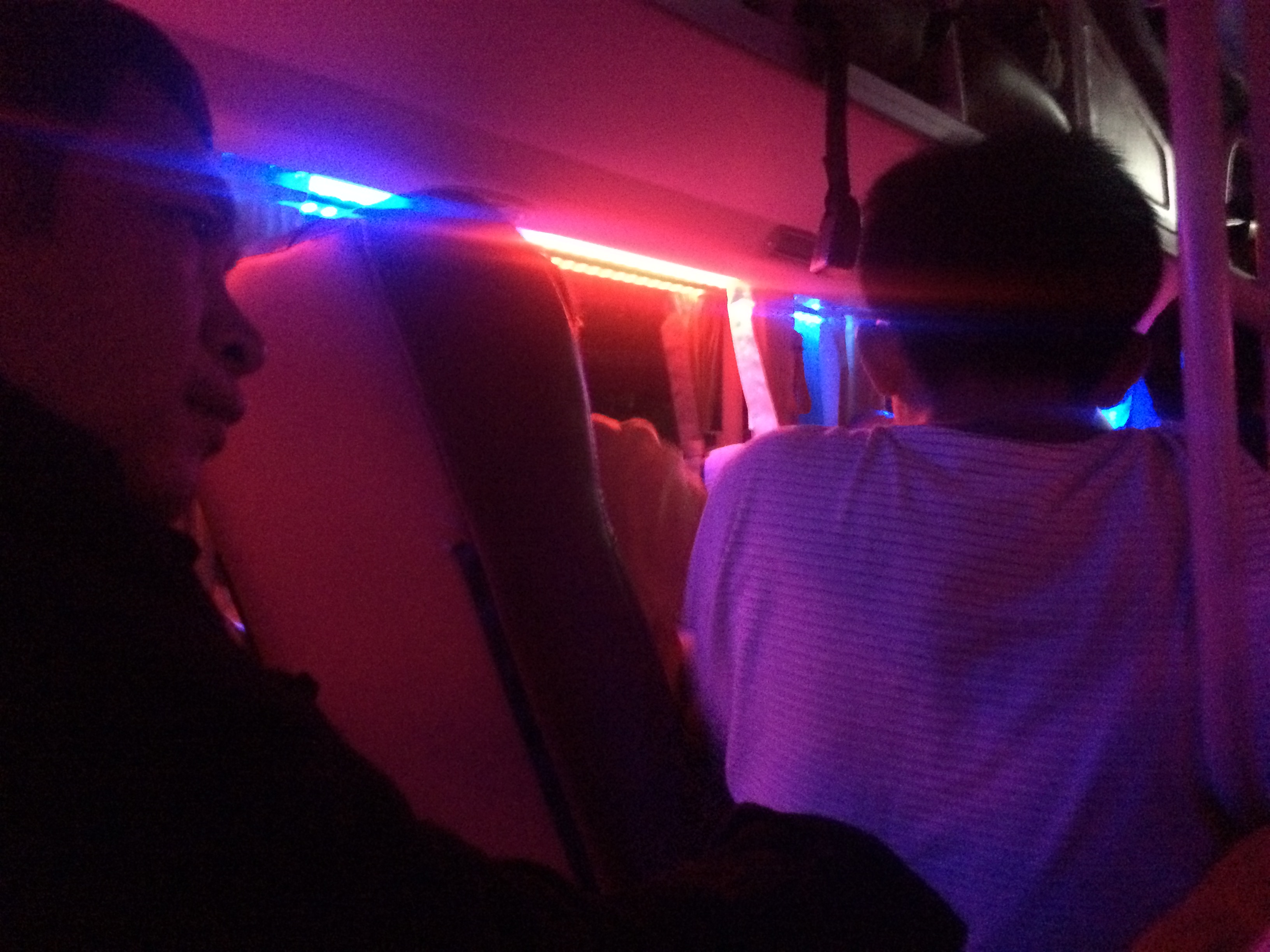 This is how it started…..5 people and 5 massive bags crammed in 4 seats. This was the van that drove us to the big sleeper bus.