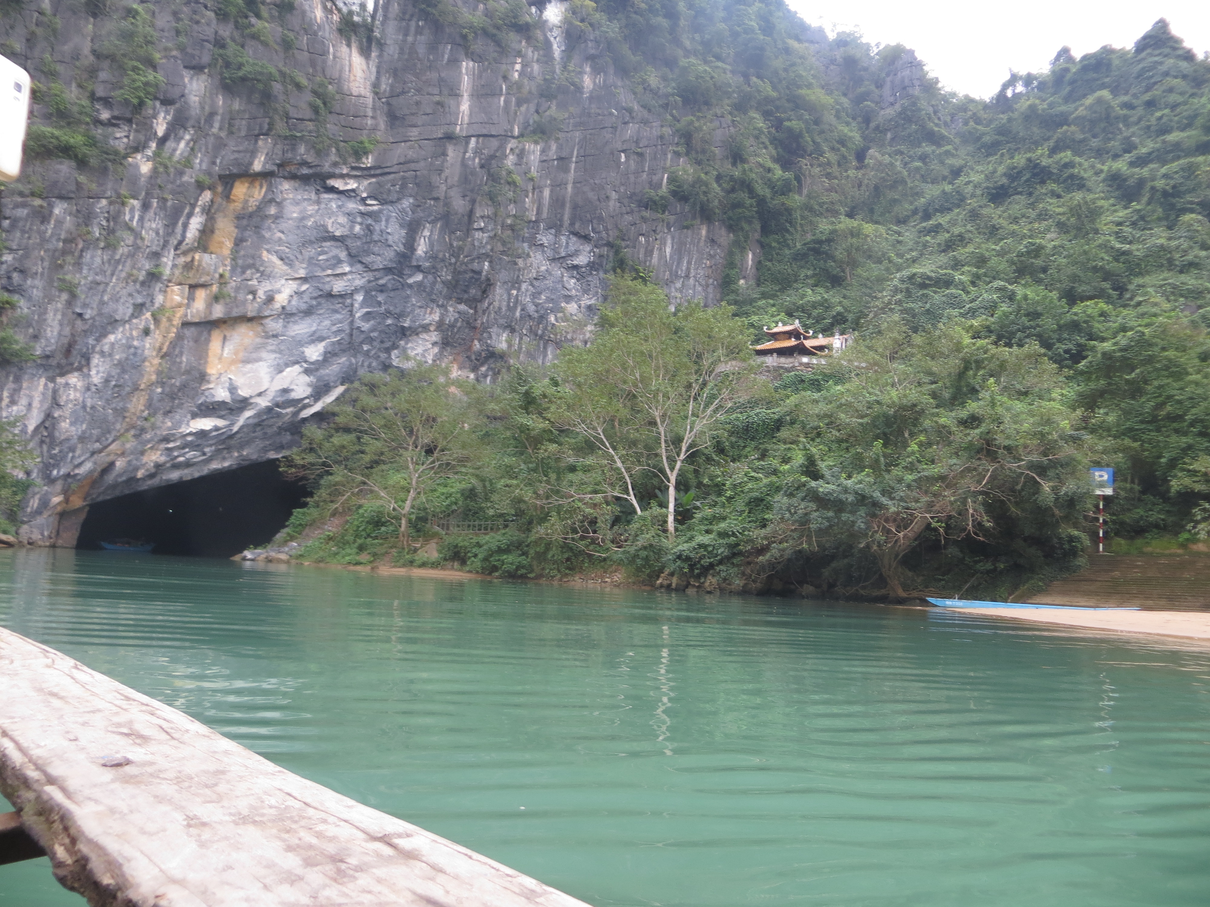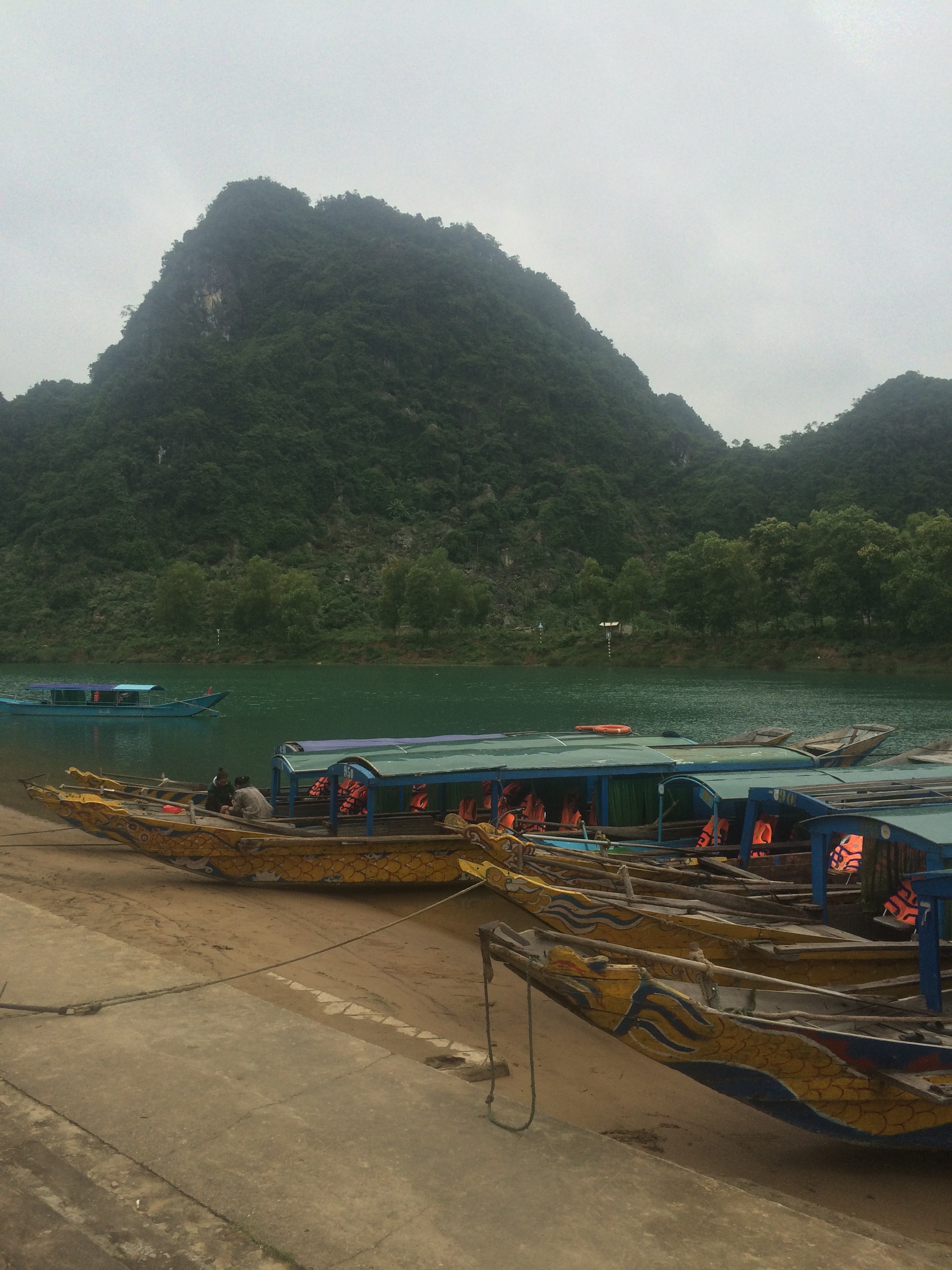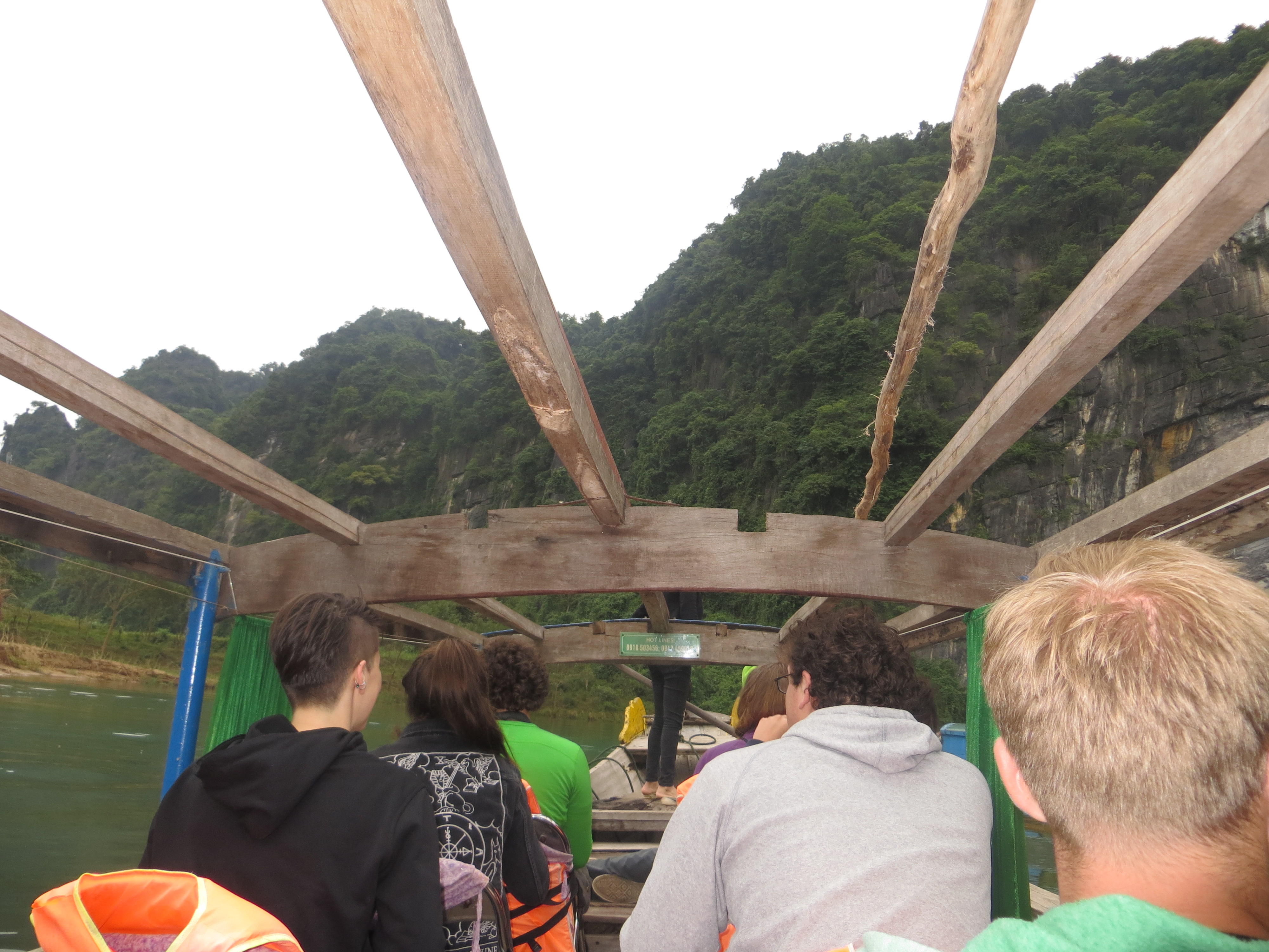 Phong Nha! Home to some of the best caves! Ahi and I ran into some friends we had met in Hoi An and we split up to go to different caves for the day. The first cave I went to was the Phong Nah Cave. The boat ride to the cave was about 40 minutes. We took the boat through the first cave. The boat had a convertible top.