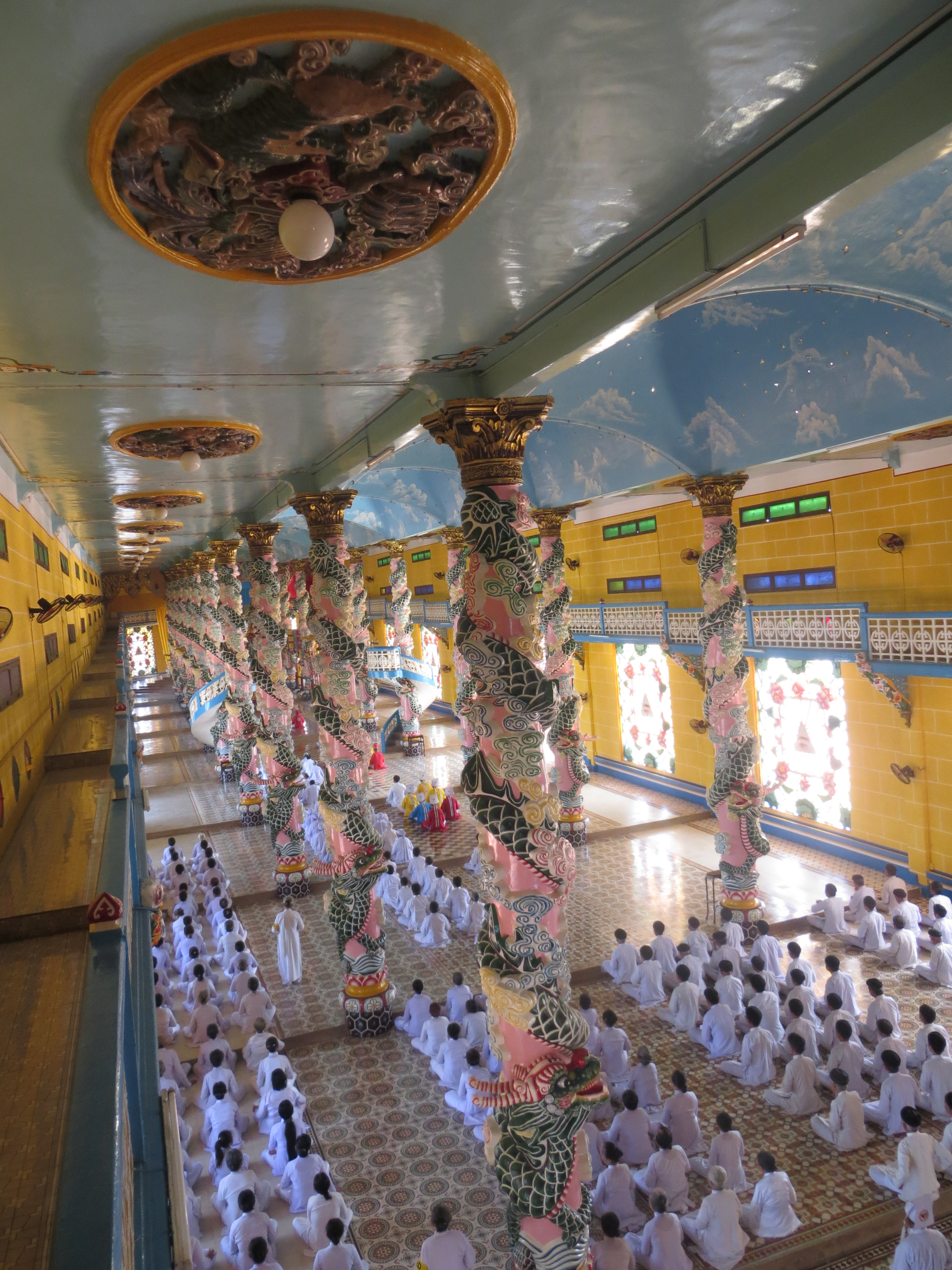 The next day I went on a tour of the Cao Dai Temple and the Cu Chi tunnels. Our first Stop was the temple. Cao Dai is a religious movement founded in Vietnam. It is a syncretistic religion which combines elements from many of the world’s main religions.