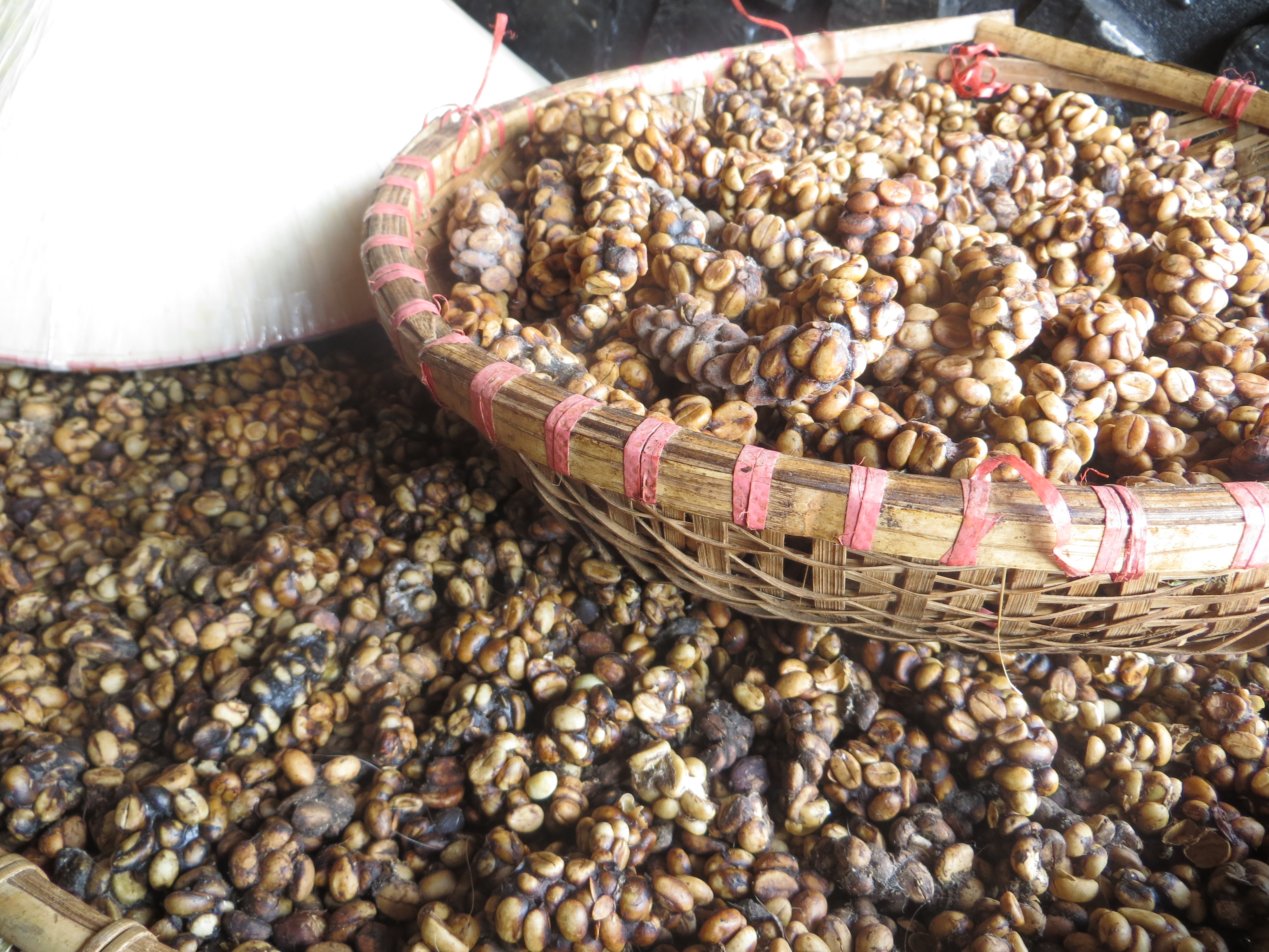 Here’s how it goes:: the weasel eats the coffee beans. The weasel then poops out the coffee beans. The coffee beans are washed, only once. Then laid out to dry. The beans are then ground up for coffee.