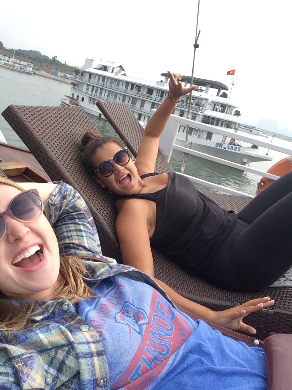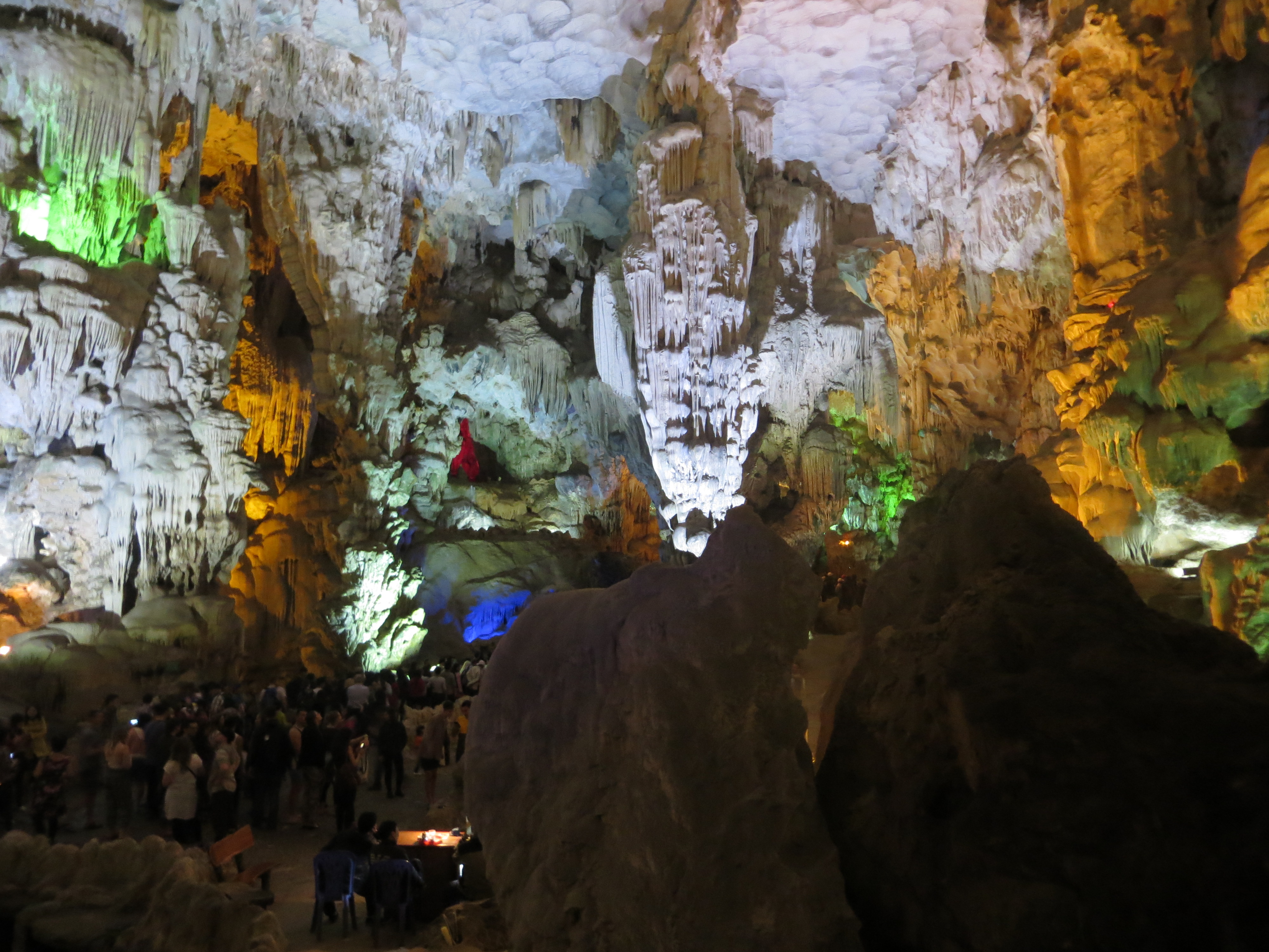 The next morning Ahi and I left for Ha Long Bay! We definitely picked the worst seat on the bus. There was literally no leg room and the woman in front of me was kind enough to recline her seat. The drive was about 3 hours. We had lunch on the boat when we arrived and then headed towards Paradise Cave. It was nice, but nothing like the caves in Phang Nah.
